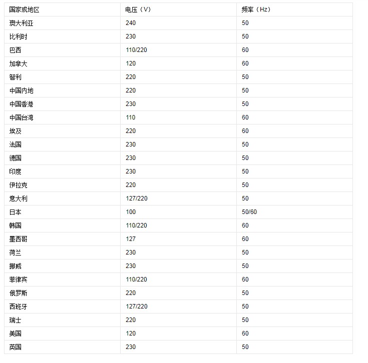 但是,我們應該都知道,并不是所有的國家都和我們一樣用的是220V的電壓。不過,其中以110V和220V的最為常見,也有少部分的國家用的是127V和240V。