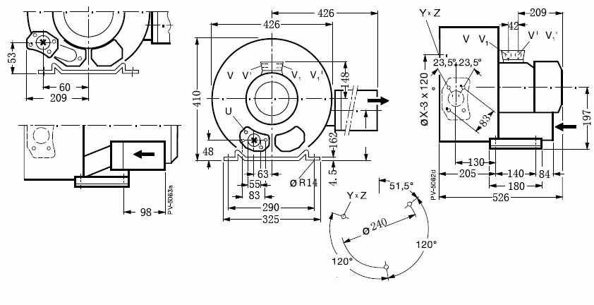 上圖為:4.3kw高壓鼓風(fēng)機(jī)平面尺寸圖